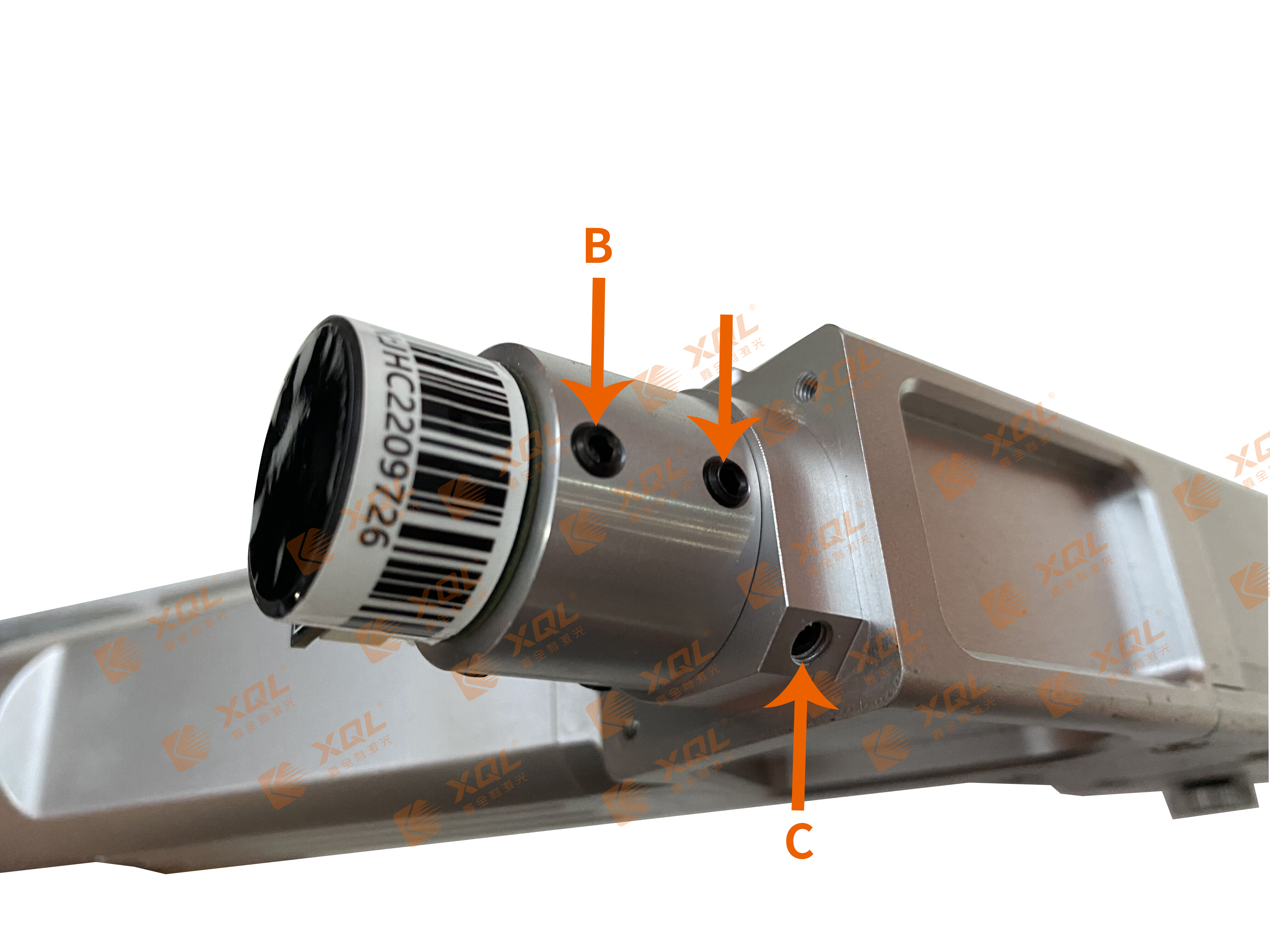 假如:紅光已經(jīng)完全無法從銅嘴里面出來,那么我們可以先看保護(hù)鏡,如下,優(yōu)先調(diào)整【C】螺絲,然后在調(diào)整上下
