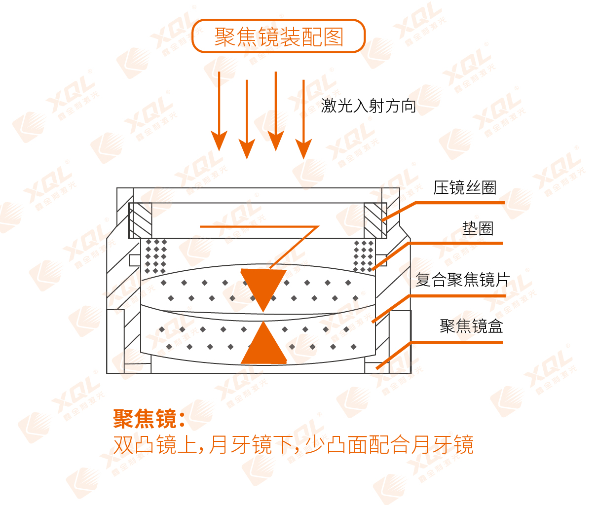 ⒉聚焦凸面朝下(即安裝后朝向保護鏡方向)