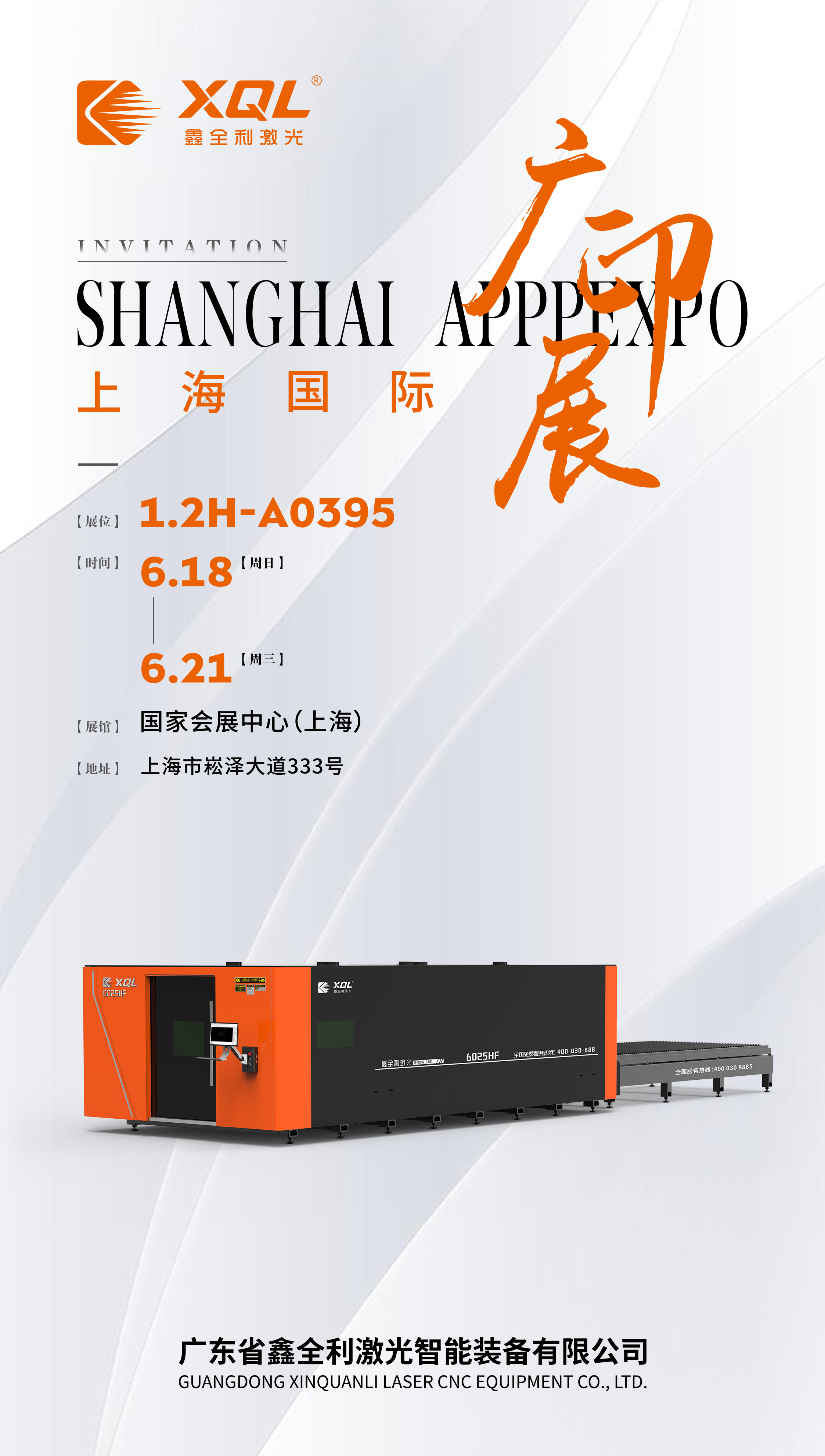 鑫全利激光誠邀您參加上海國際廣印展,我們攜萬瓦激光切割機、激光切管機、機器人焊割自動化方案,在上海國家會展中心1.2H-A0395,恭候您的光臨!