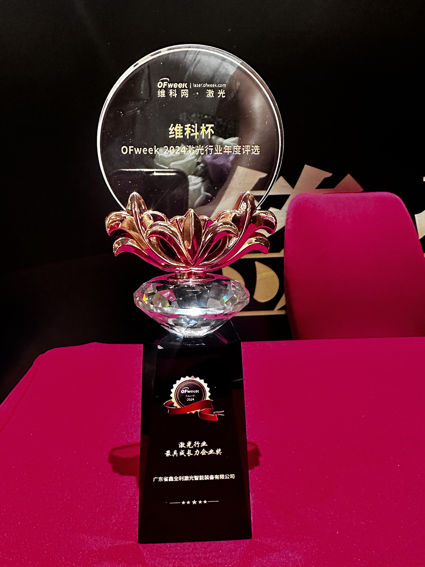 鑫全利激光榮獲“維科杯·OFweek 2024年度激光行業最具成長力企業獎”稱號!