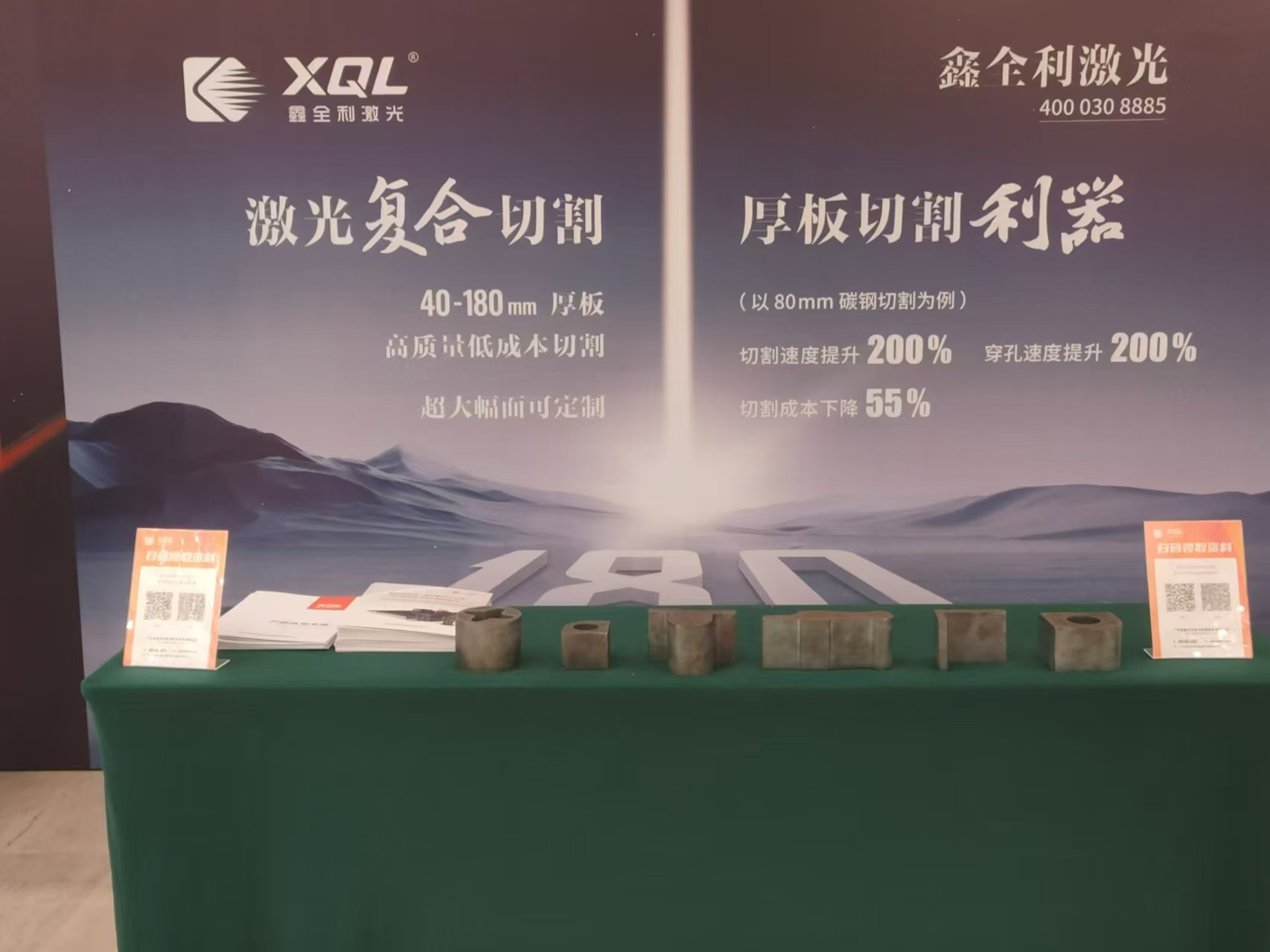 作為論壇的受邀企業之一,鑫全利激光在組委會開設展廳舉辦激光復合切割機產品樣品展示,根據客戶需求和疑問點,鑫全利的工程師通過視頻、圖冊、案例分析、一對一溝通等講解形式,從不同領域的行業屬性、轉型特點等維度,為觀眾提供定制化的厚板金屬激光切割解決方案。