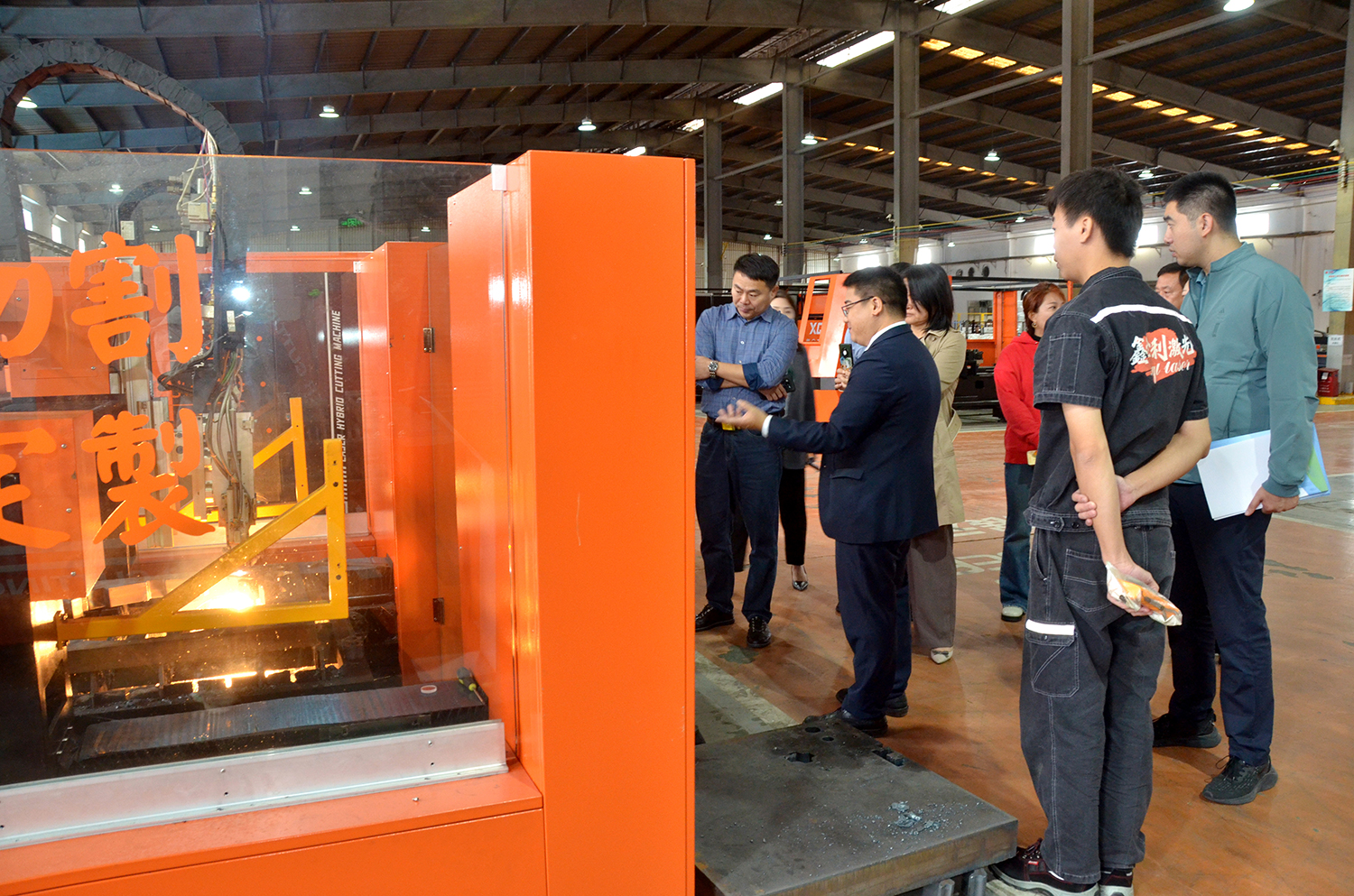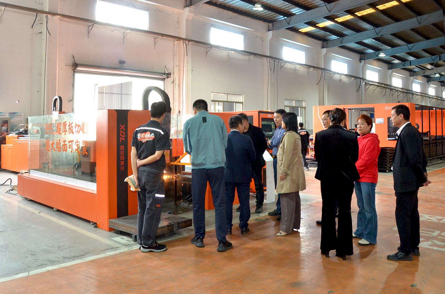 同時,一行領導參觀我司研發創新成果“激光復合切割機”的切割過程,此設備具有多項創新技術和優勢。能在特厚板60mm以上的金屬切割有了顯著的提升,能夠大幅提高生產效率和產品質量,降低生產成本,也展示了鑫全利激光在激光智能領域的積極探索和貢獻。