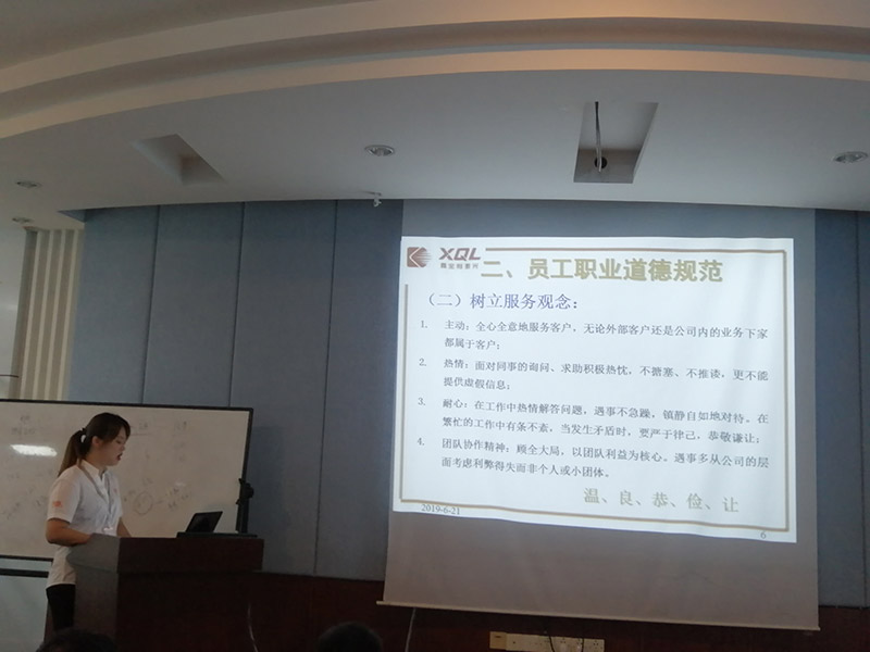 2019年6月21日下午,鑫全利行政部在培訓室開展了職業道德和行為規范”及“機械安全“等相關的培訓,本次培訓主題為職業道德和行為規范講解,要求廣大員工樹立愛崗敬業的精神,通過提升職業道德意識從而提升個人修養。