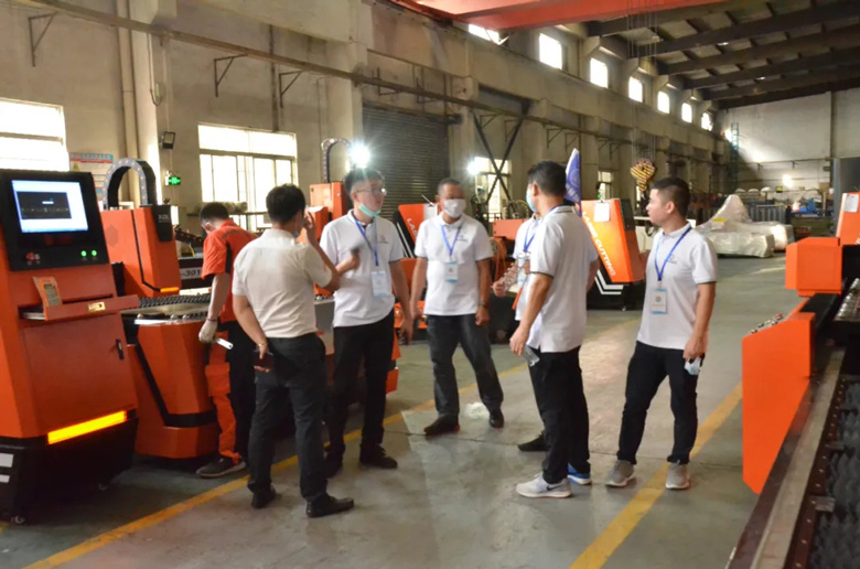在簡單介紹公司后,鑫全利激光營銷中心總經理田總帶領協會一行參觀我司的設備生產基地。介紹設備機的生產基地、工作車間、產品制作流程等。協會成員紛紛肯定了鑫全利激光的發展,并對公司企業文化、運營模式、管理理念等給予高度評價。