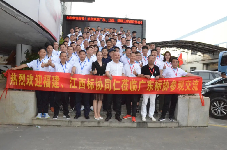 昨日下午,福建、江西標識行業協會代表團一百多位會員,在廣東省標識行業協會相關人員的陪同下,來我司參觀訪問。鑫全利董事長王總、營銷中心總經理田總熱情接待了代表團一行。