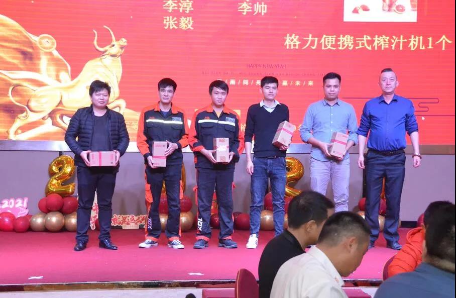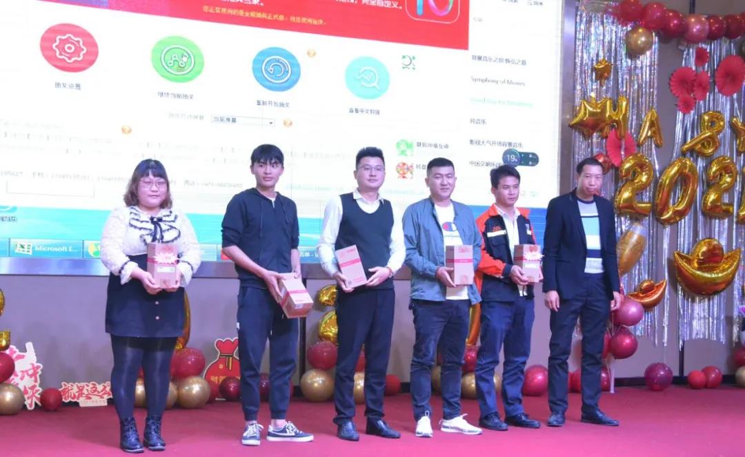公司領導上臺頒發2020年度優秀員工獎項,分別是:優秀員工獎、最佳進步獎、突出貢獻獎、銷售冠軍獎、服務之星獎、優秀干部獎、“2020”年度杰出人物獎,鼓勵獲獎員工在新的一年起到模范帶頭作用,繼續做出貢獻。