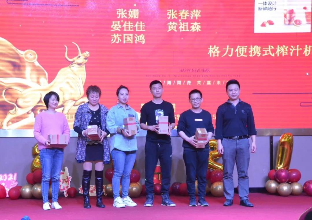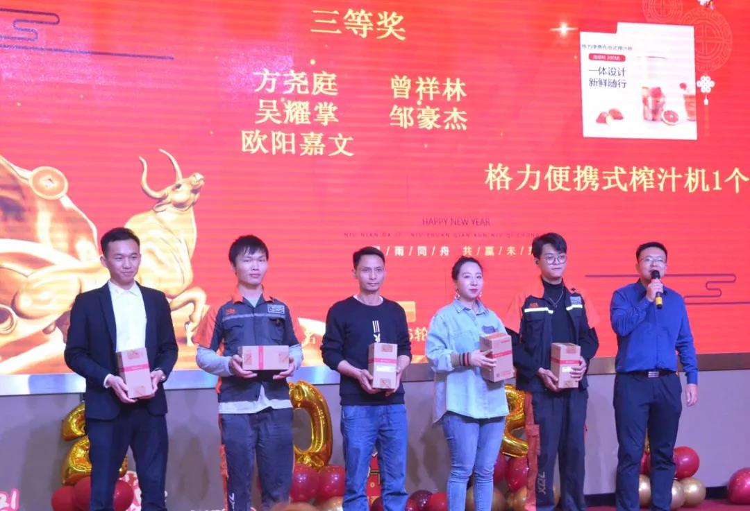 表演到此就落幕啦,但并不代表年會盛典的結束,接下來是更為激動人心的抽獎環節。獎品豐富,中獎率高,抽獎環節從三等獎開始依序往特等獎一一揭曉,歡呼聲一浪高過一浪。