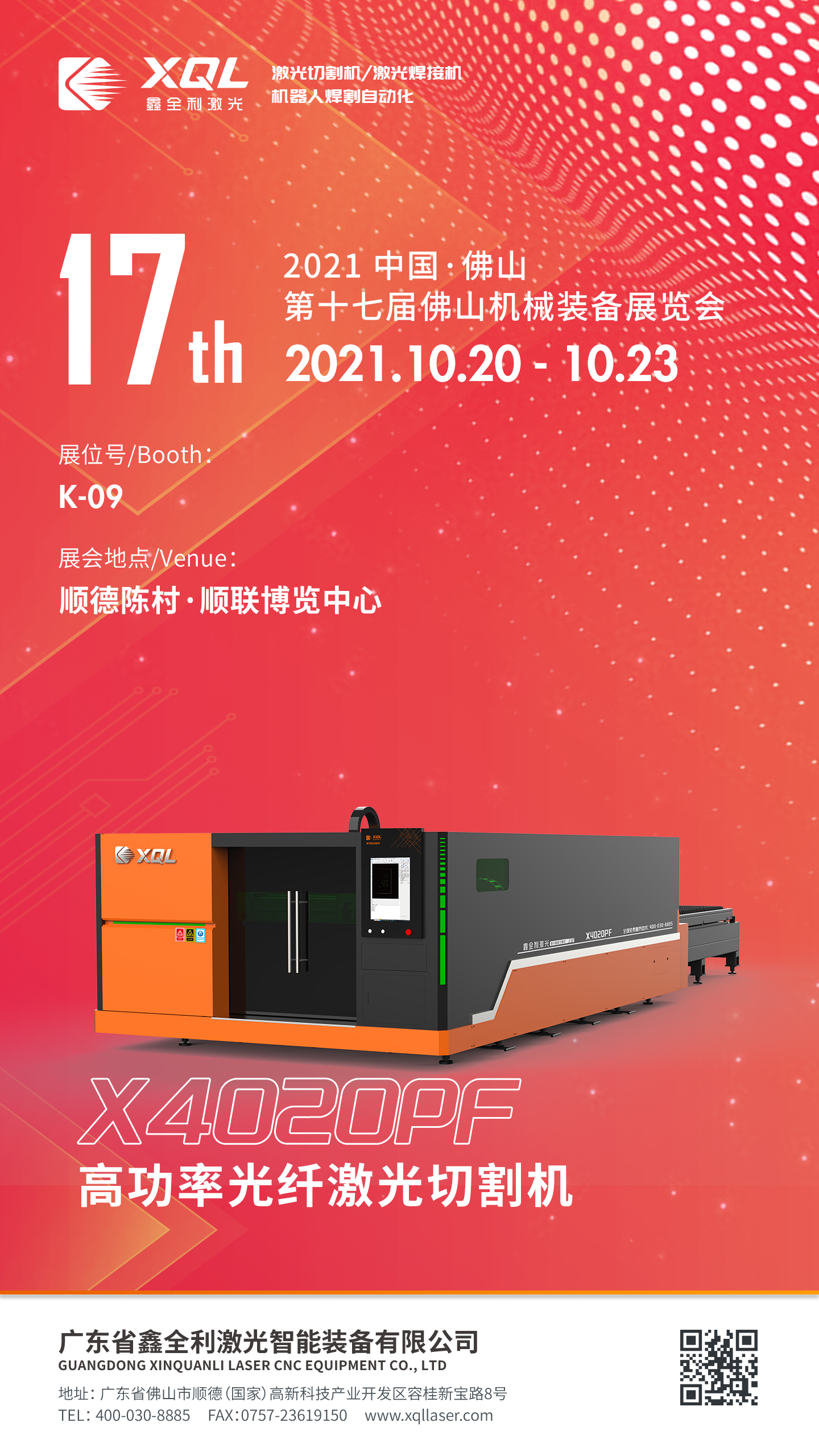 10月20-23日,鑫全利激光亮相佛山順聯機械展K09展位!