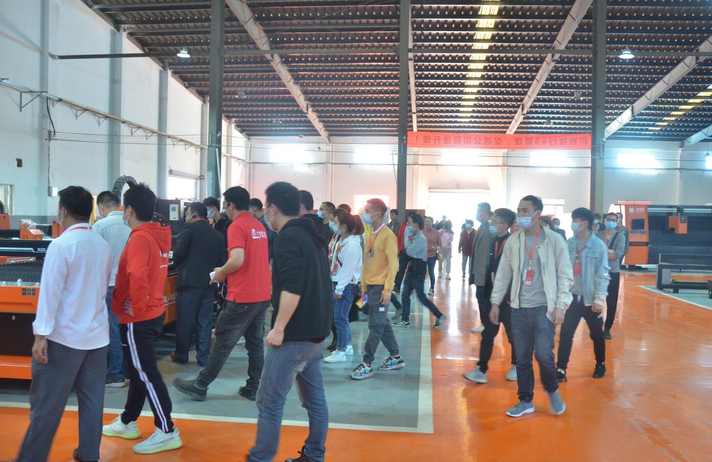 在工作人員熱情的引導(dǎo)下,學(xué)員們共同參觀了鑫全利激光的激光切割機(jī)生產(chǎn)基地。