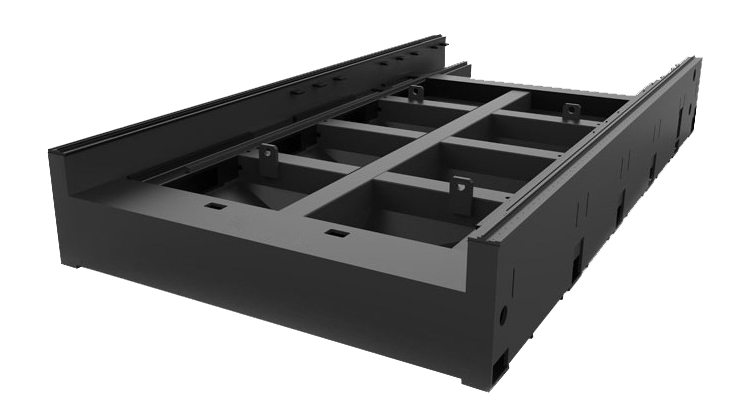 機(jī)加工時(shí)使用數(shù)控龍門銑床,一次性加工床身兩側(cè)的導(dǎo)軌和齒條安裝面,保證了機(jī)架兩側(cè)導(dǎo)軌、齒條安裝面精度的一致性。